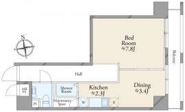 間取り 1DK 専有面積 35.69m2(10.7坪) 壁芯