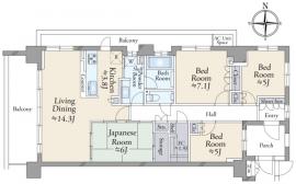 間取り 4LDK 専有面積 95.48m2(28.8坪) 壁芯