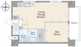 間取り 1LDK 専有面積 41.49m2(12.5坪) 壁芯