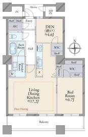 間取り 1SLDK 専有面積 69.86m2(21.1坪) 壁芯