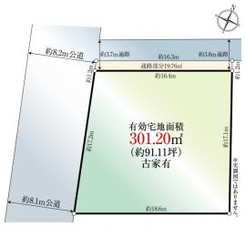 ●地勢/ひな段●宅地造成工事規制区域 ●道路:西側約8.1m~約8.2m公道 ●北側通路幅員約3.7m~約3.8m(建築基準法上の道路ではありません) ●現況有効宅地面積301.20m2(約91.11坪)他北側通路部分約19.76m2(約5.97坪) 上記公簿面積と現況測量面積は相違しています。 なお、現況測量面積は確定実測面積ではありません。 ●現況有効宅地面積および通路面積は、2023年9月26日付(株)ダイワ設計企画室三瀬貴之作成「現況測量図」に基づきます。 ●ガス:都市ガス(敷地内引込有)●水道:公営水道(敷地内引込有)●汚水・雑排水:公共下水(敷地内引込有)