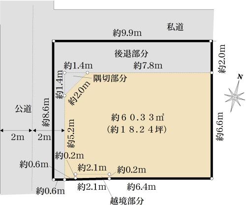 土地面積 60.33m2(18.2坪) 実測 別途私道負担24.20m2