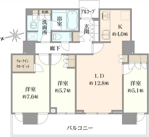 バルコニー 20.78m2 主要採光方向 西