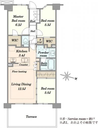 間取り 3SLDK 専有面積 74.12m2(22.4坪) 壁芯