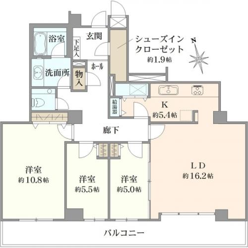間取り 3LDK 専有面積 103.81m2(31.4坪) 壁芯