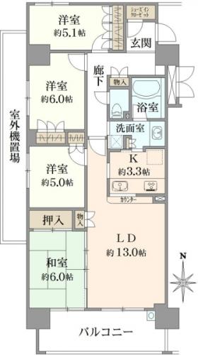 間取り 4LDK 専有面積 86.58m2(26.1坪) 壁芯
