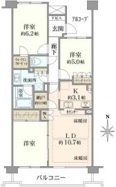 間取り 3LDK 専有面積 71.98m2(21.7坪) 壁芯