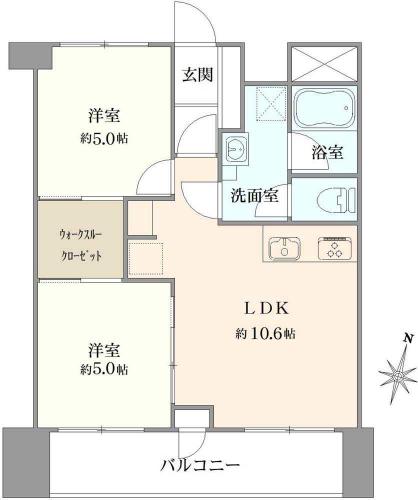 間取り 2LDK 専有面積 58.50m2(17.6坪) 壁芯