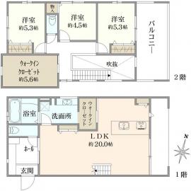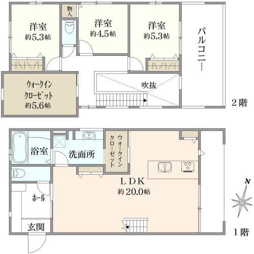 土地面積 192.86m2(58.3坪) 登記簿 別途私道負担74.75m2 建物延面積 98.74m2