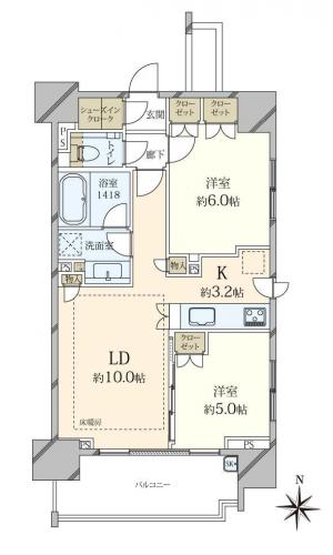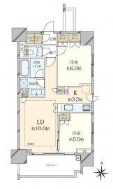 間取り 2LDK 専有面積 54.57m2(16.5坪) 壁芯