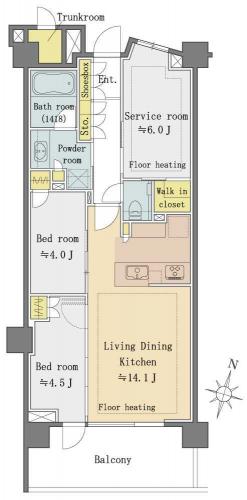 間取り 2SLDK 専有面積 64.92m2(19.6坪) 壁芯
