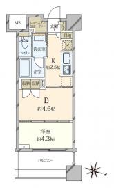 間取り 1DK 専有面積 30.44m2(9.2坪) 壁芯