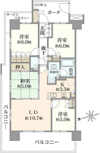 備考 専有面積(76.18m2)にはトランクルーム面積(0.7m2)が含まれます。/トランクルーム:0.7m2/ポーチ:7.77m2