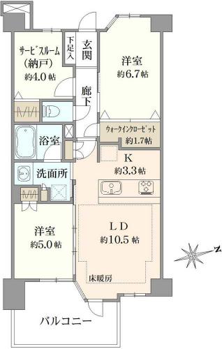 バルコニー 9.90m2 主要採光方向 南東