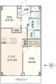 間取り 2LDK 専有面積 53.20m2(16.0坪) 壁芯