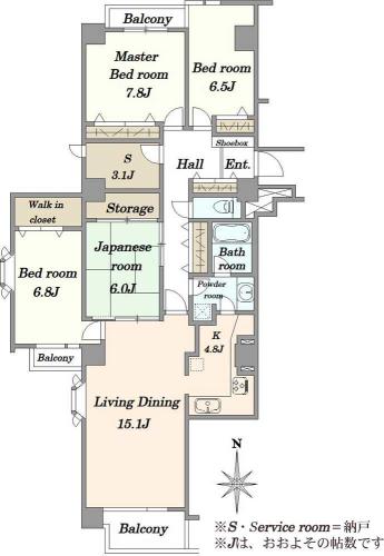 間取り 4LDK 専有面積 115.66m2(34.9坪) 壁芯