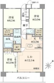 間取り 3LDK 専有面積 72.84m2(22.0坪) 壁芯