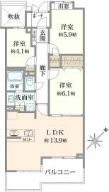 間取り 3LDK 専有面積 66.47m2(20.1坪)