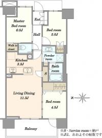 間取り 3LDK 専有面積 68.25m2(20.6坪) 壁芯