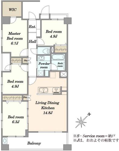 間取り 4LDK 専有面積 84.03m2(25.4坪) 壁芯