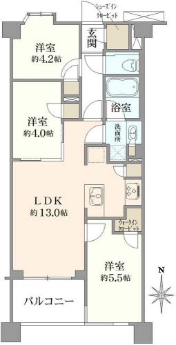間取り 3LDK 専有面積 58.52m2(17.7坪) 壁芯