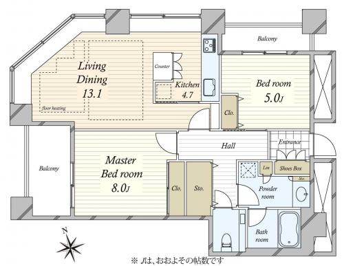 バルコニー 8.76m2 主要採光方向 北西