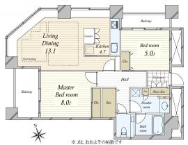 間取り 2LDK 専有面積 72.28m2(21.8坪) 壁芯