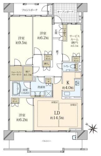 バルコニー 17.60m2 主要採光方向 南西