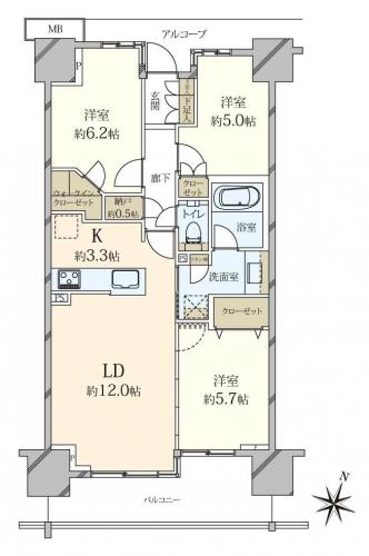 間取り 3LDK 専有面積 71.18m2(21.5坪) 壁芯