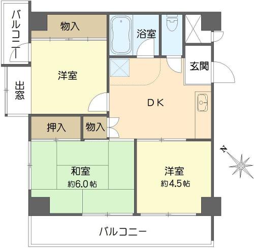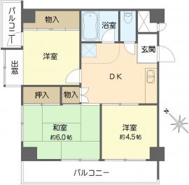 間取り 3LDK 専有面積 44.37m2(13.4坪) 壁芯