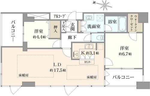 間取り 2LDK 専有面積 70.77m2(21.4坪) 壁芯