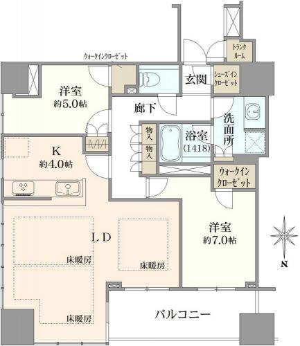 間取り 2LDK 専有面積 81.42m2(24.6坪) 壁芯