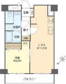 間取り 1LDK 専有面積 39.86m2(12.0坪) 壁芯