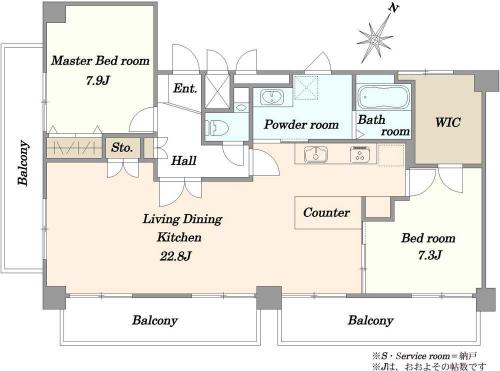 間取り 2LDK 専有面積 89.94m2(27.2坪) 壁芯