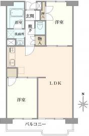 間取り 2LDK 専有面積 58.42m2(17.6坪) 壁芯