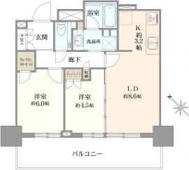 間取り 2LDK 専有面積 52.91m2(16.0坪) 壁芯
