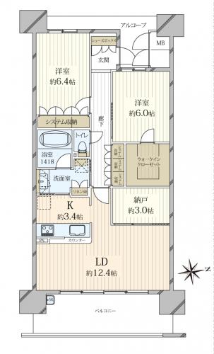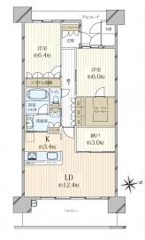 間取り 2LDK 専有面積 75.68m2(22.8坪) 壁芯