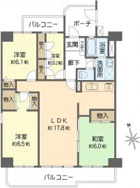 間取り 4LDK 専有面積 94.63m2(28.6坪) 壁芯