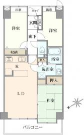 間取り 3LDK 専有面積 68.33m2(20.6坪) 壁芯