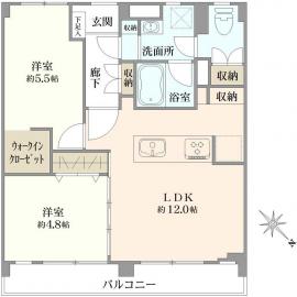 間取り 2LDK 専有面積 52.40m2(15.8坪) 壁芯