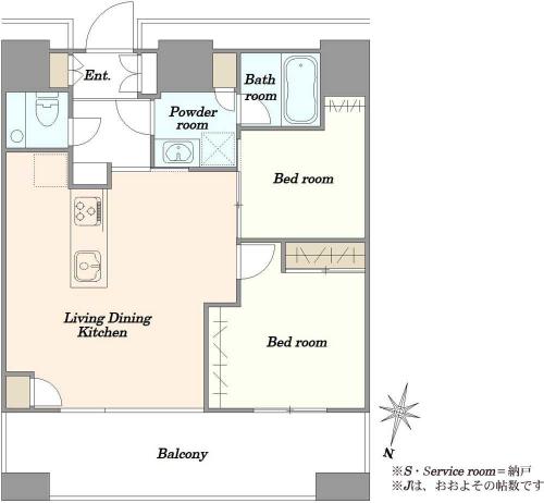 間取り 2LDK 専有面積 53.10m2(16.0坪) 壁芯