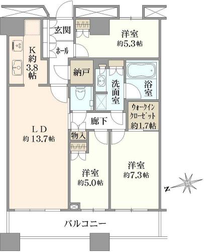 間取り 3SLDK 専有面積 84.84m2(25.6坪) 壁芯