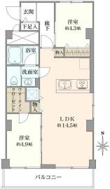間取り 2LDK 専有面積 51.94m2(15.7坪)