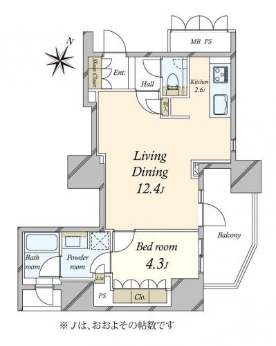 間取り 1LDK 専有面積 47.19m2(14.2坪) 壁芯