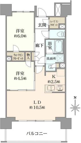 間取り 2LDK 専有面積 54.53m2(16.4坪)