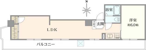 間取り 1LDK 専有面積 42.44m2(12.8坪)