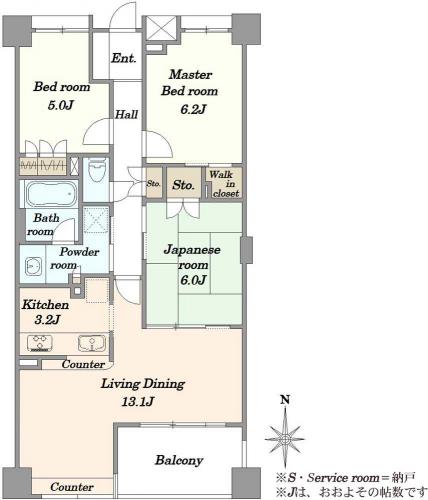 間取り 3LDK 専有面積 74.12m2(22.4坪) 壁芯