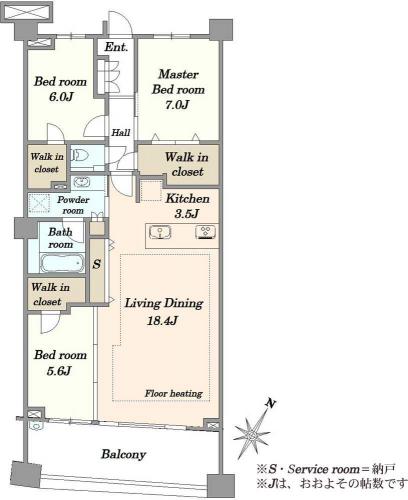 間取り 3LDK 専有面積 91.86m2(27.7坪) 壁芯