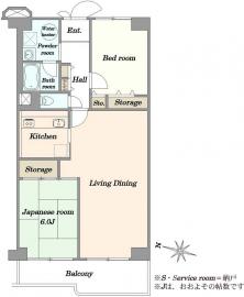 間取り 2LDK 専有面積 65.68m2(19.8坪) 壁芯
