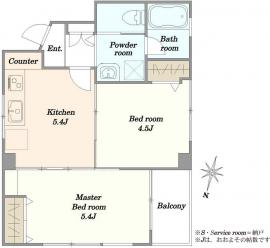 間取り 2DK 専有面積 36.55m2(11.0坪) 壁芯